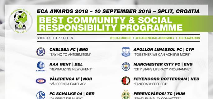 The General Assembly will also include the ECA Awards 2018 ceremony, which will take place on the evening of Monday 10 September 2018. First introduced in 2010, the ECA Awards reward outstanding club performances, encourage best practice and highlight successful club management. The ECA Awards consist of four categories, which include:
